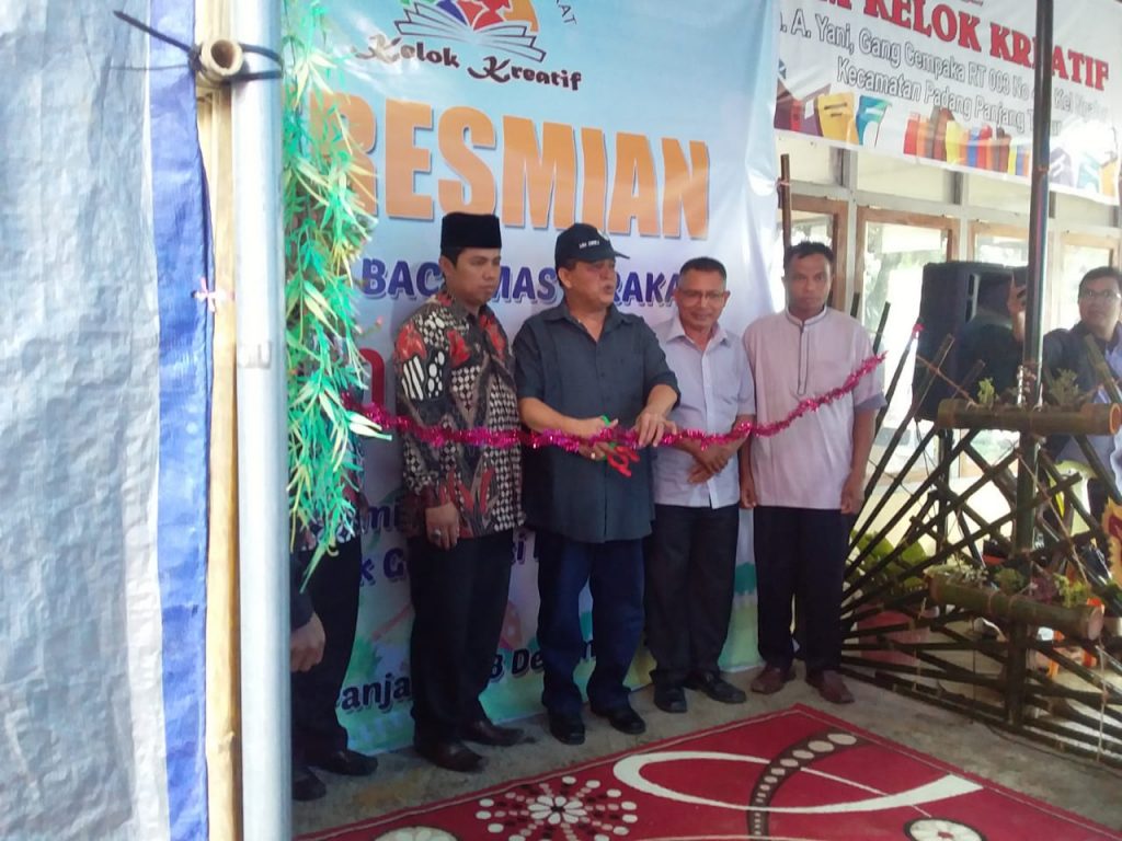 peresmian TBM ini di tandai dengan penggutingan pita oleh Kepala Bidang Perpustakaan Bapak Yoni Aldo dan di saksikan tamu undangan dan masyarakat setempat.