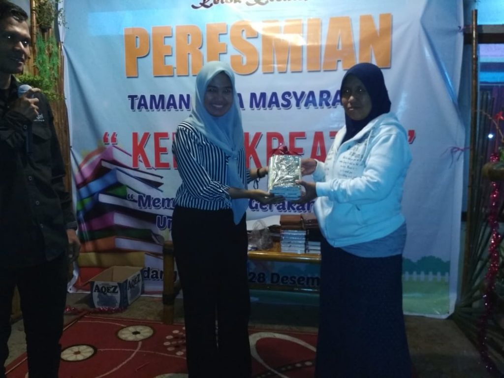 Pada malam harinya dilakukan penyerahan bantuan Buku dari Pegiat Literasi Kota Padang Panjang yang di wakili oleh Maharani Putri.