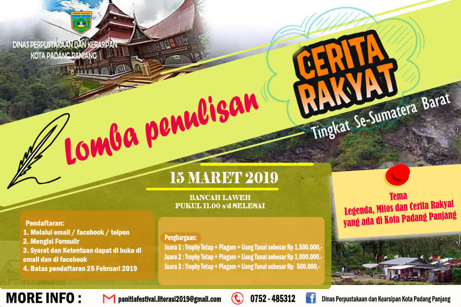 AYO IKUT SERTA DALAM LOMBA PENULISAN TENTANG CERITA RAKYAT YANG HIDUP DAN BERKEMBANG DI KOTA PADANGPANJANG: