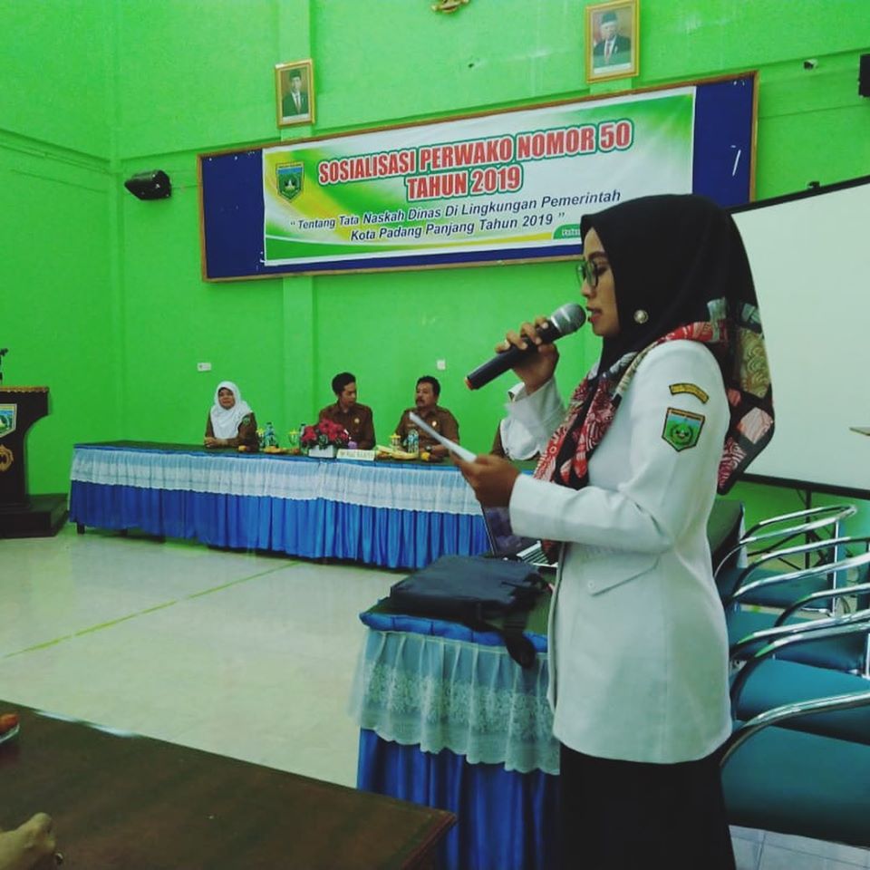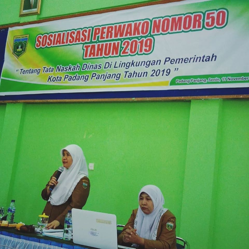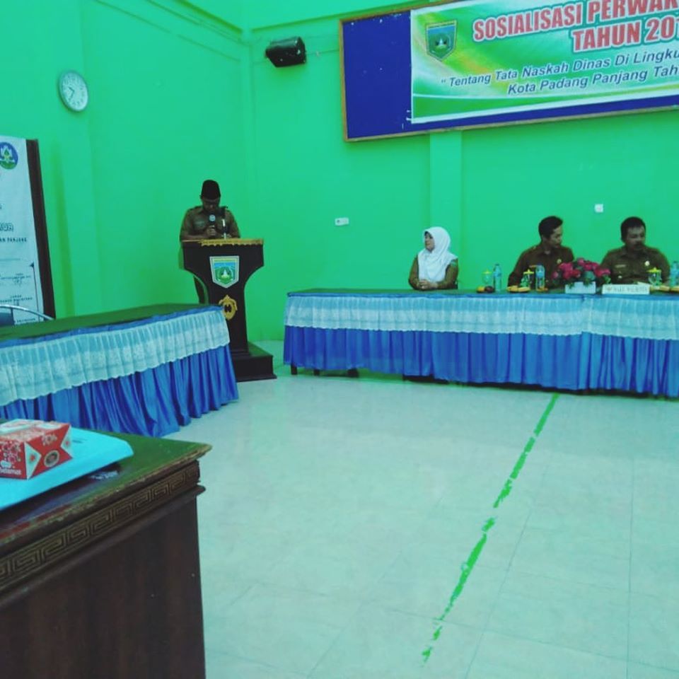 Acara sosialisasi tata naskah dinas perwako nomor 50 tahun 2019 yg langsung di buka Bapak Wakil Walikota Padang Panjang BPK Drs Asrul yg didampingi oleh Kadis Dinas Perpustakaan Dan Kearsipan kota Padang Panjang BPK Alvisena Koto, buk sek Neldawati dan Kabid bidang kearsipan ibuk Elfita Yeni dan di kiri oleh peserta yg berasal dari utusan2 dari OPD dan kelurahan dilingkungan kota Padang panjang.